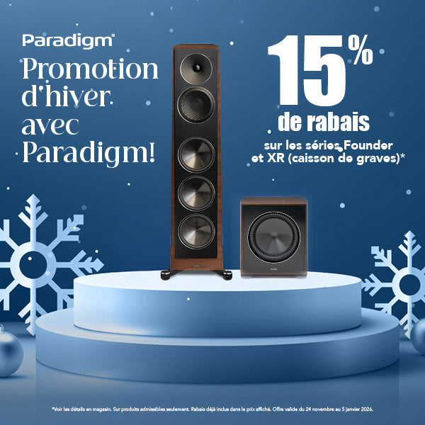 Modèles admissibles : Série Monitor : SE 8000=30% et tous les autres modèles de la série Monitor, y compris les modèles Surround 1 et 3 = 25%. Série Premier = 20%. Série Defiance X = 20%. Série Cinema = 25%. Série Founder = 15%. Série XR-11 et XR-13 Sub = 15%.
